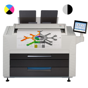 CAD-Plots in Schwarzweiß und Farbe, Ausdrucke in allen DIN-Formaten, stufenloses Vergrößern und Verkleinern, Großflächenkopien, automatische DIN-Plan-Faltung, Druckkapazität von ca. 250 m² pro Stunde (~500 DIN A1)