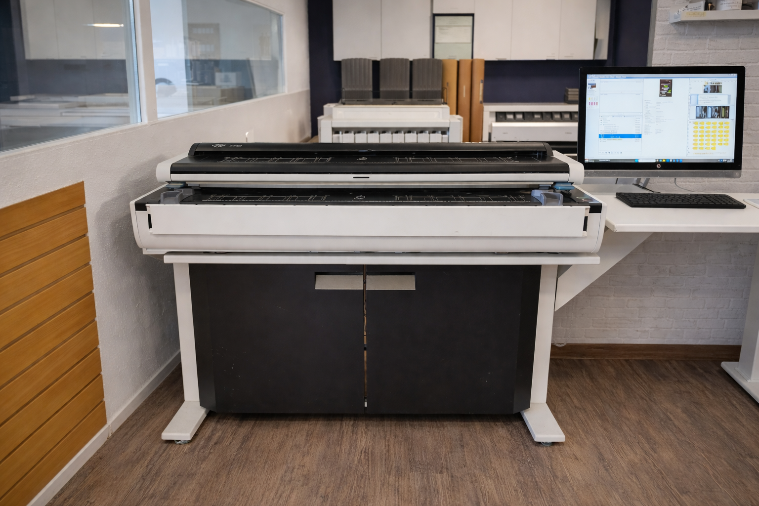 Für exakte CAD-Plots, Baupläne und Großformatdrucke setzen wir auf modernste Druck- und Scantechnik führender Hersteller. Unsere leistungsstarken Maschinen ermöglichen schnelle Produktionszeiten, höchste Detailgenauigkeit und zuverlässige Ergebnisse – auch bei großen Auflagen.